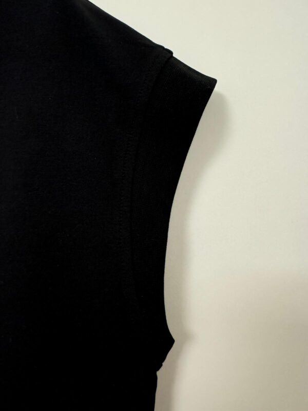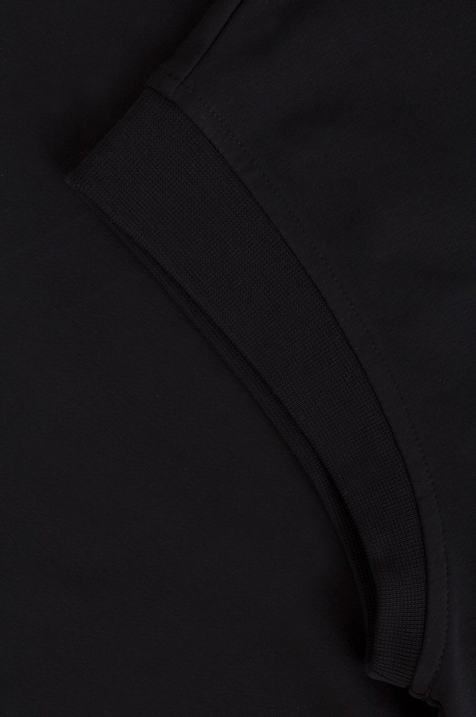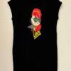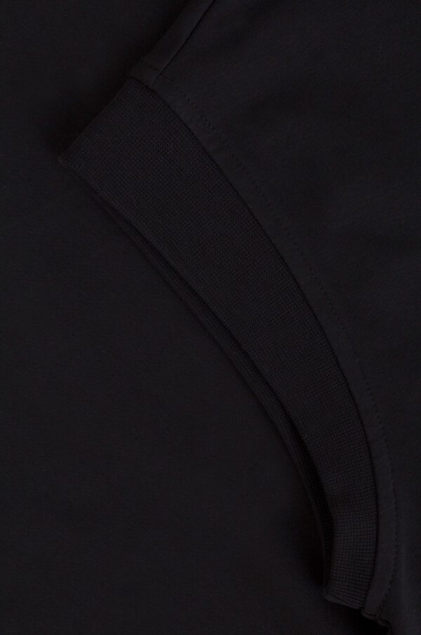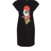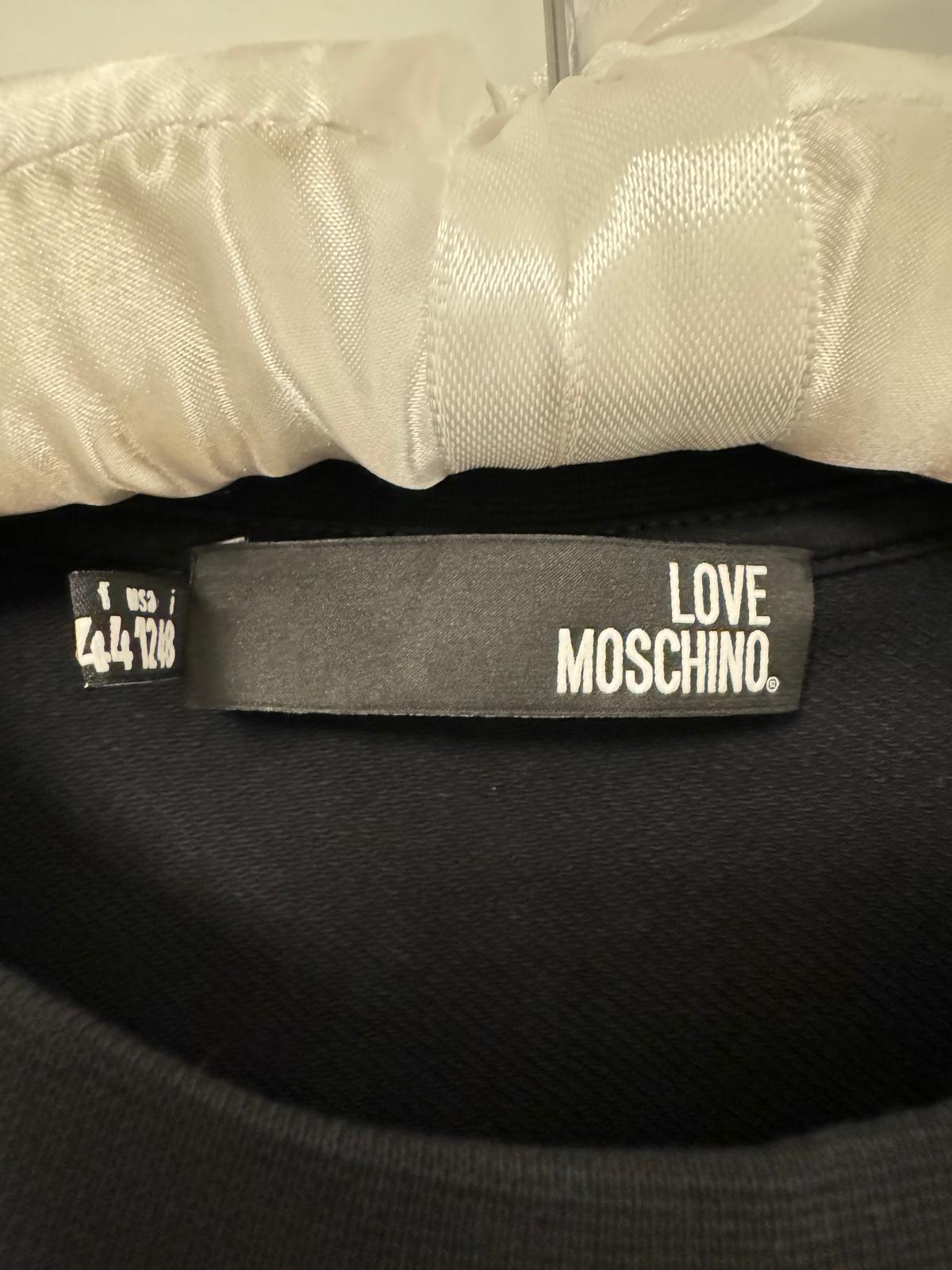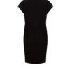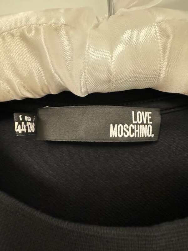 Czarna sukienka Love Moschino o prostym fasonie 'Regular Fit’. Dekolt typu o-neck oraz rękawy zakończone prążkowanym ściągaczem. Z przodu kolorowy nadruk z nazwą marki.