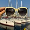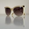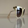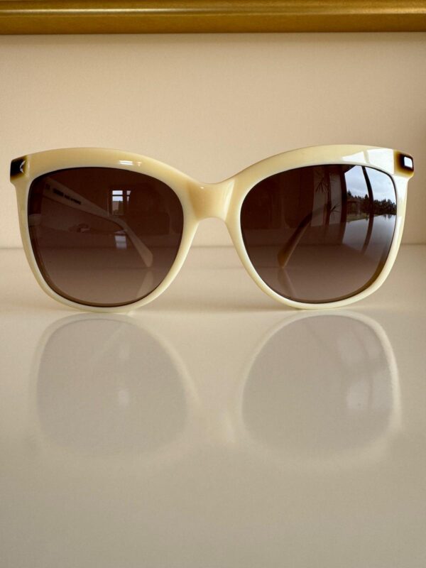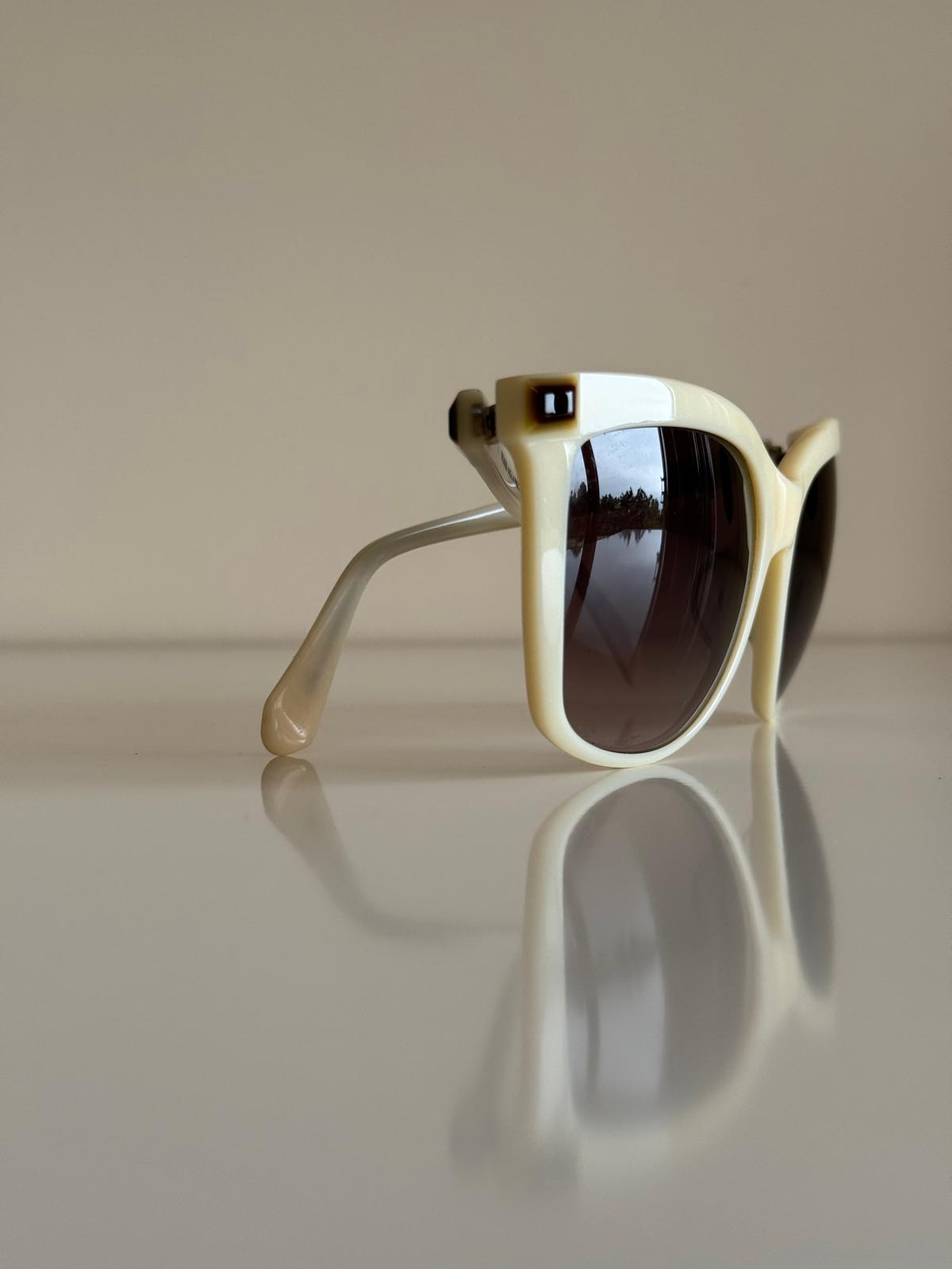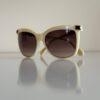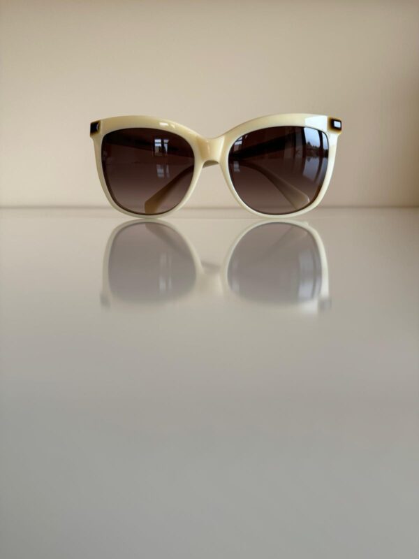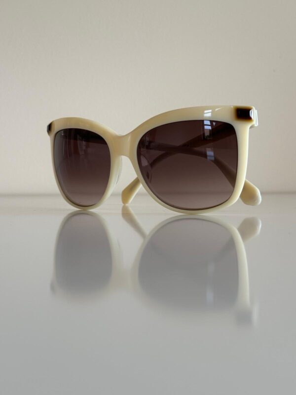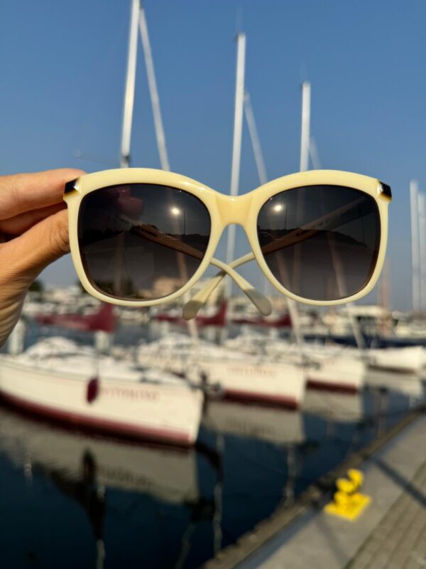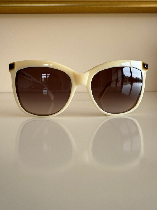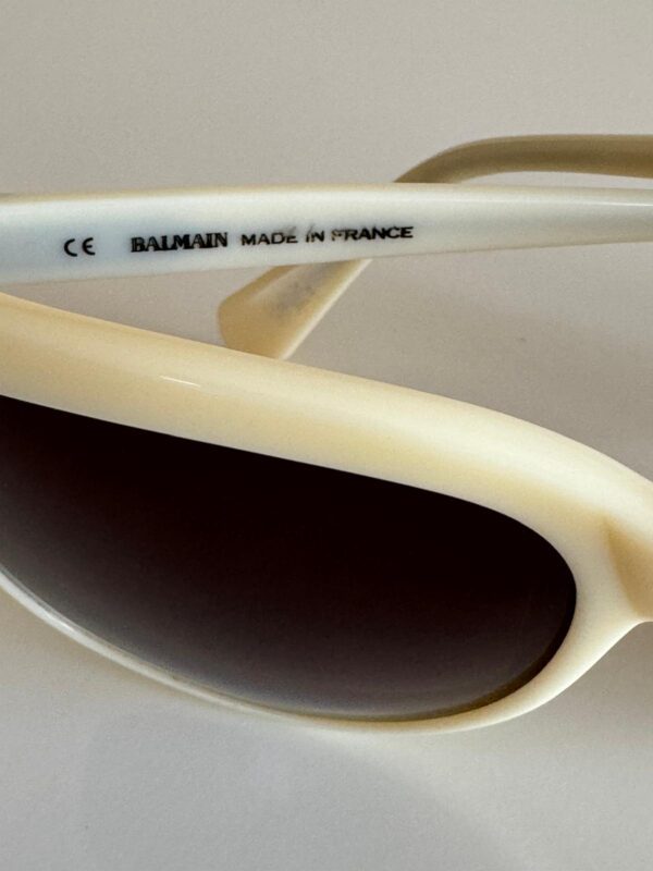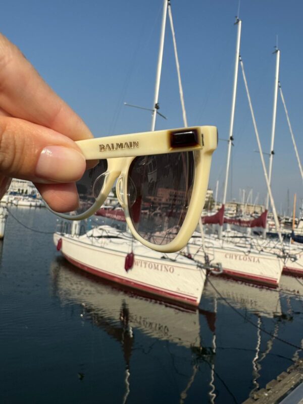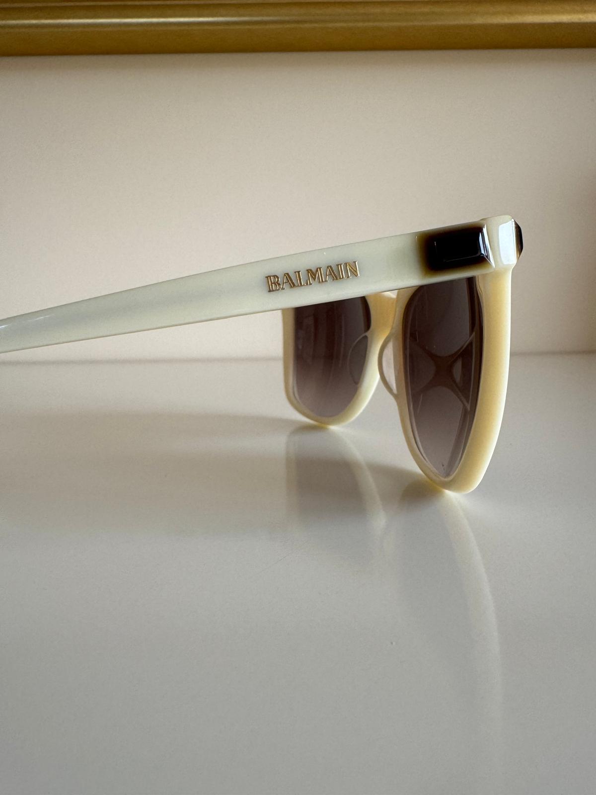 Jasnobeżowe okulary przeciwsłoneczne w prostych i eleganckich oprawkach od Balmain. Doskonale komponują się z klasycznymi, ponadczasowymi stylizacjami. Mogą być idealnym dodatkiem do eleganckiego garnituru czy sukienki.