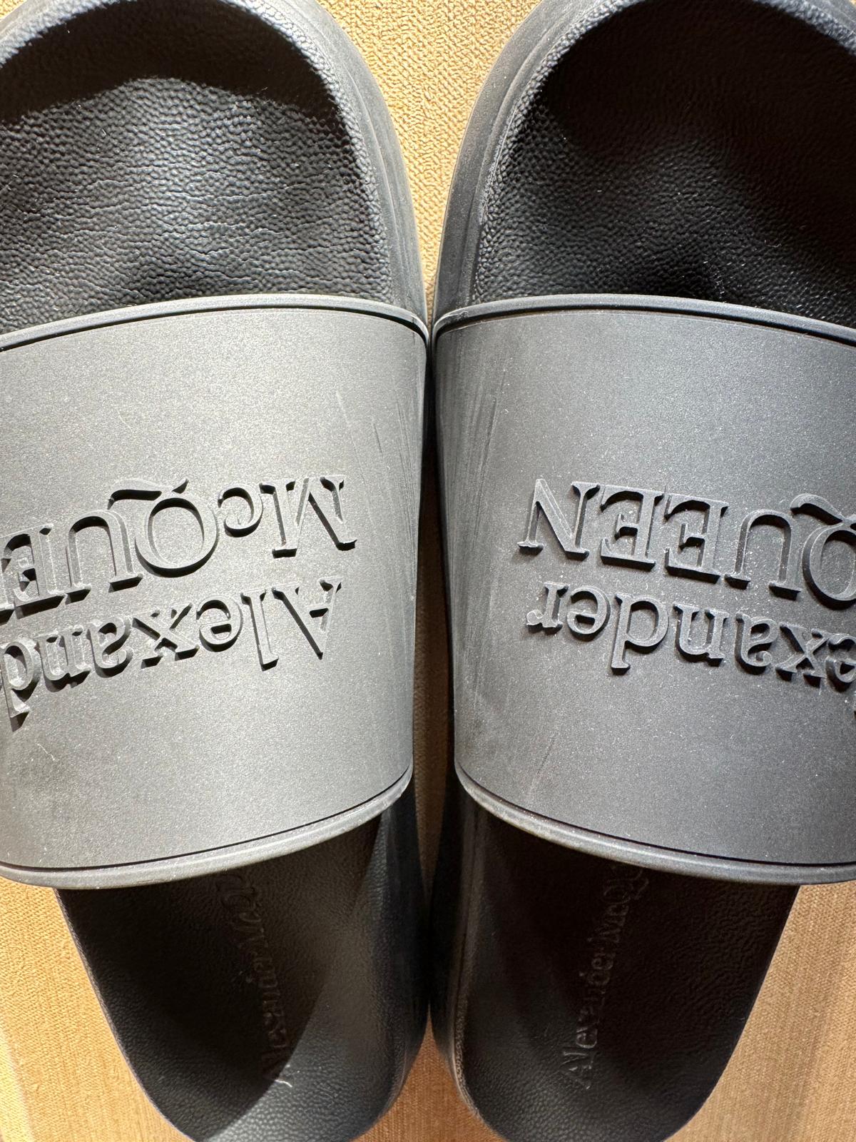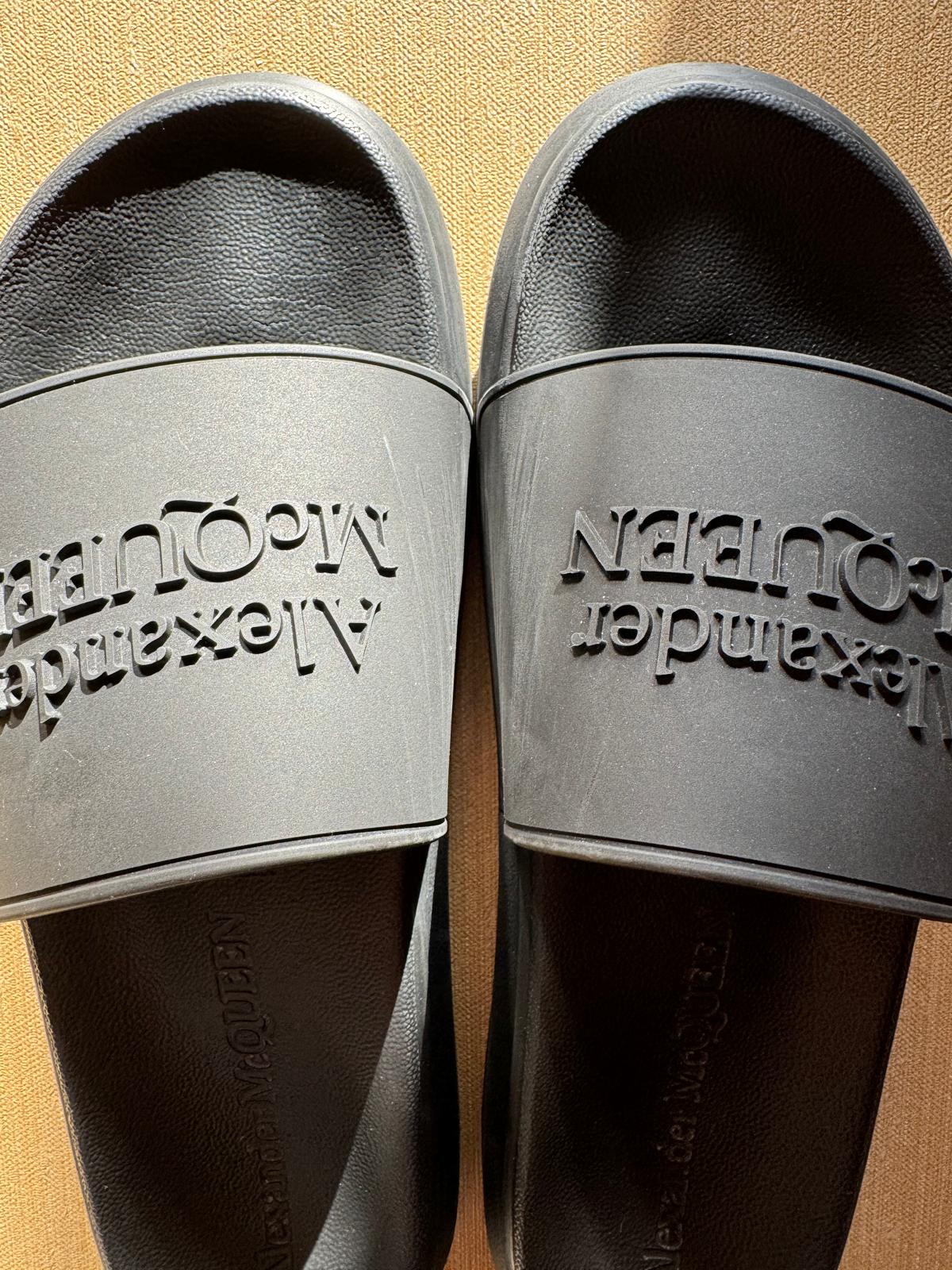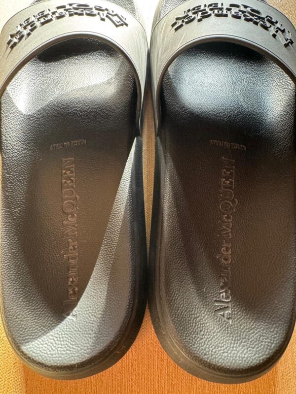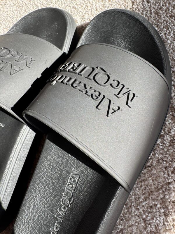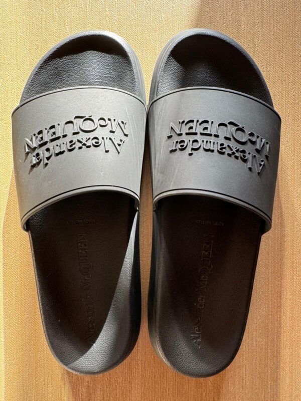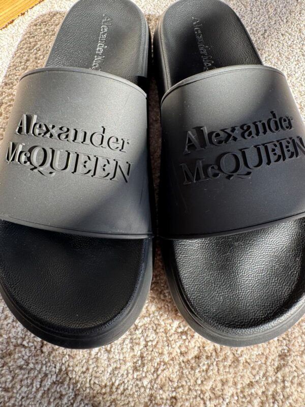 Podnieś swój letni styl dzięki tym luksusowym sliderom od Alexandra McQueen. Wygodna oraz wyprofilowana podeszwa zapewni komfort użytkowania w letnie dni.