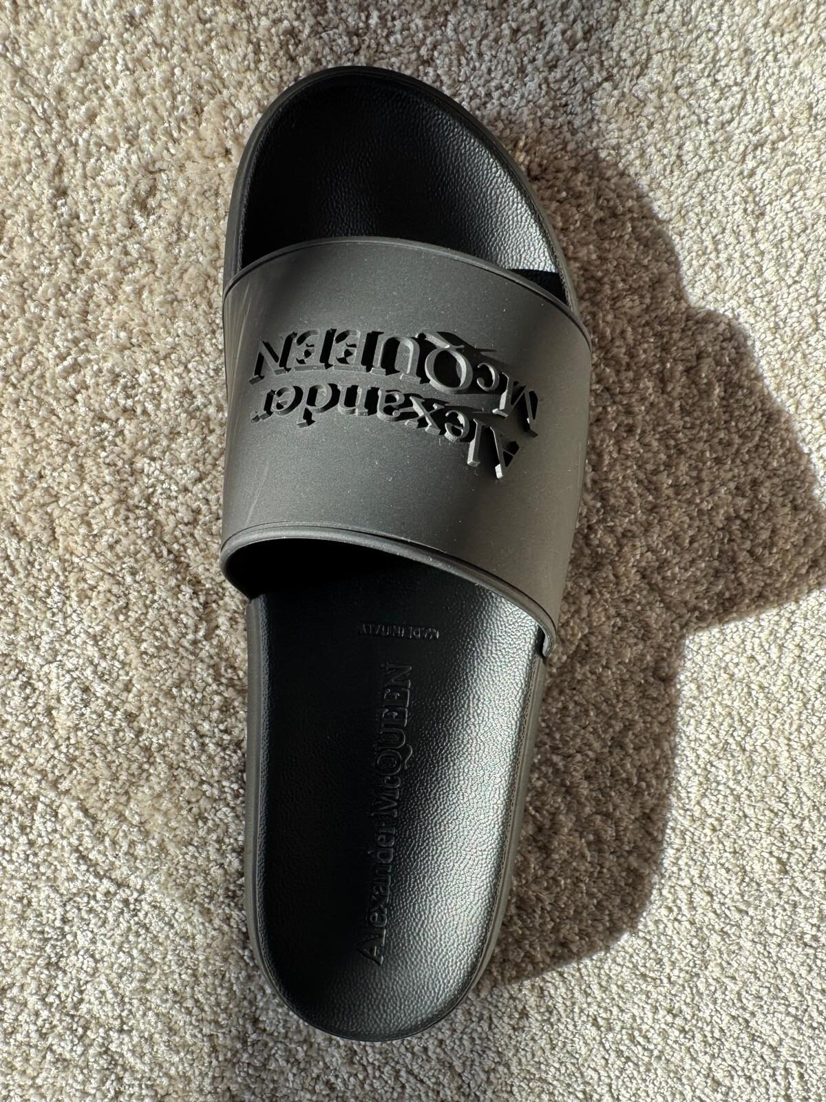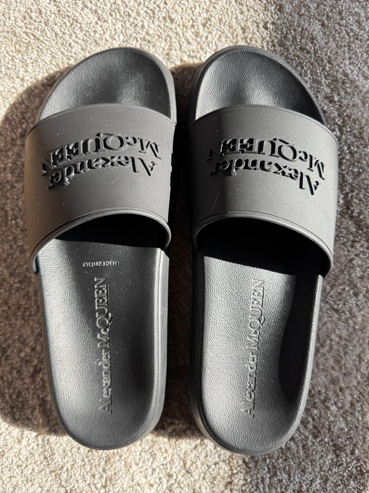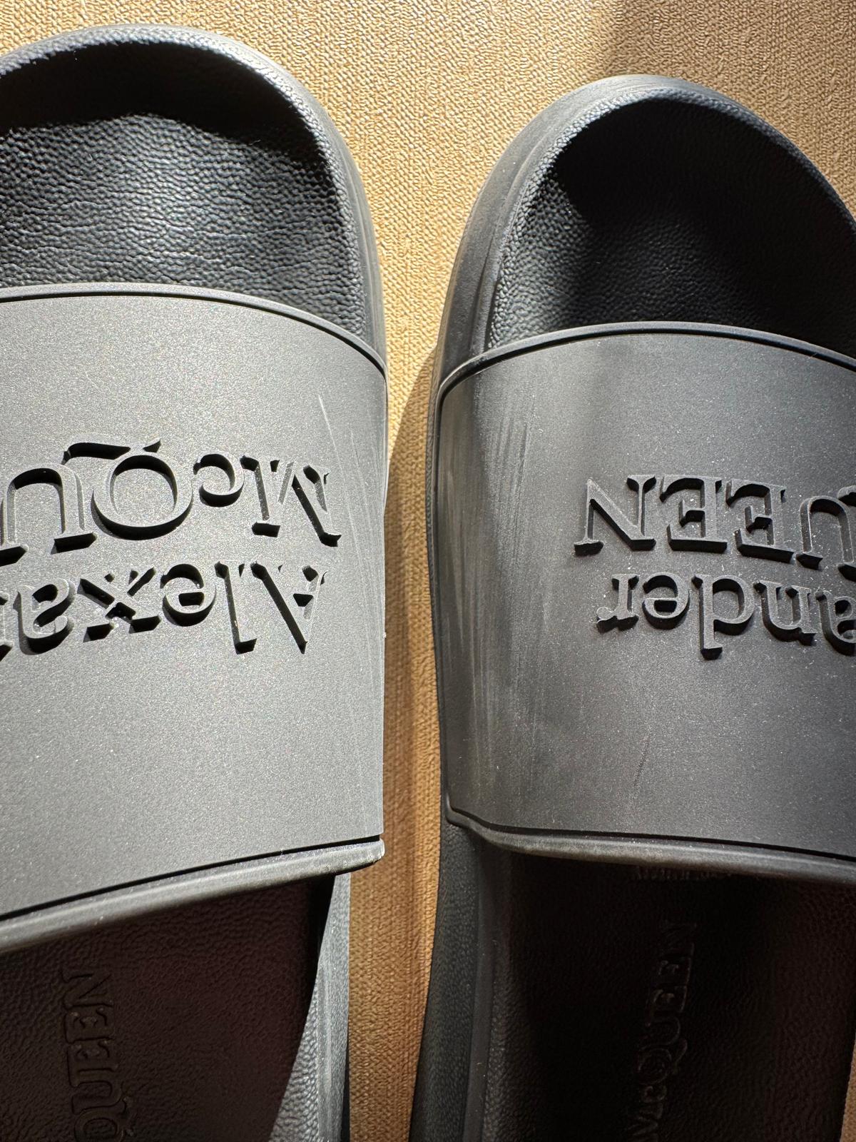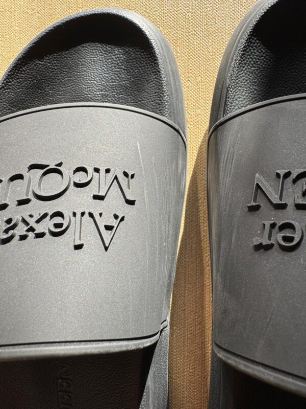 Podnieś swój letni styl dzięki tym luksusowym sliderom od Alexandra McQueen. Wygodna oraz wyprofilowana podeszwa zapewni komfort użytkowania w letnie dni.