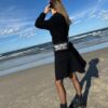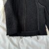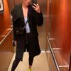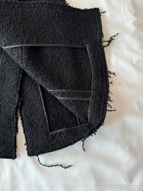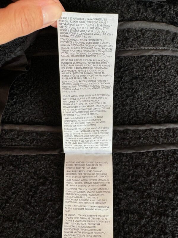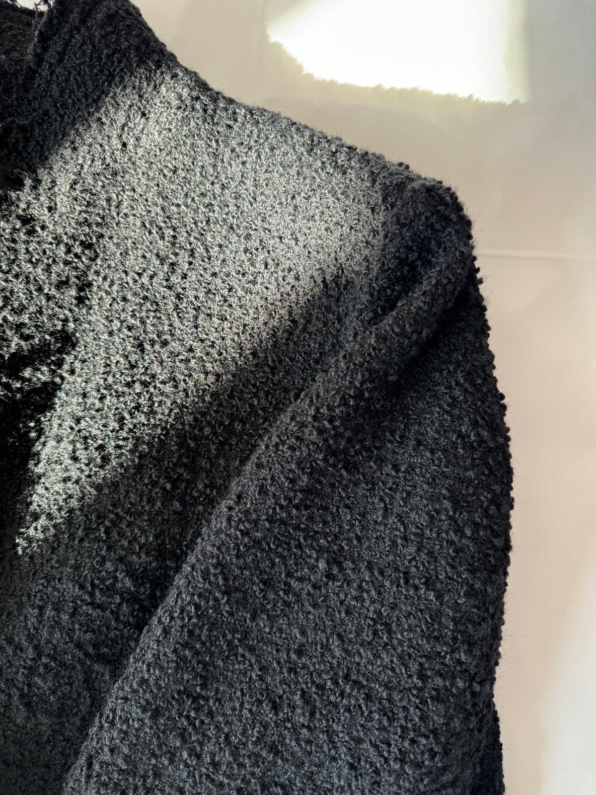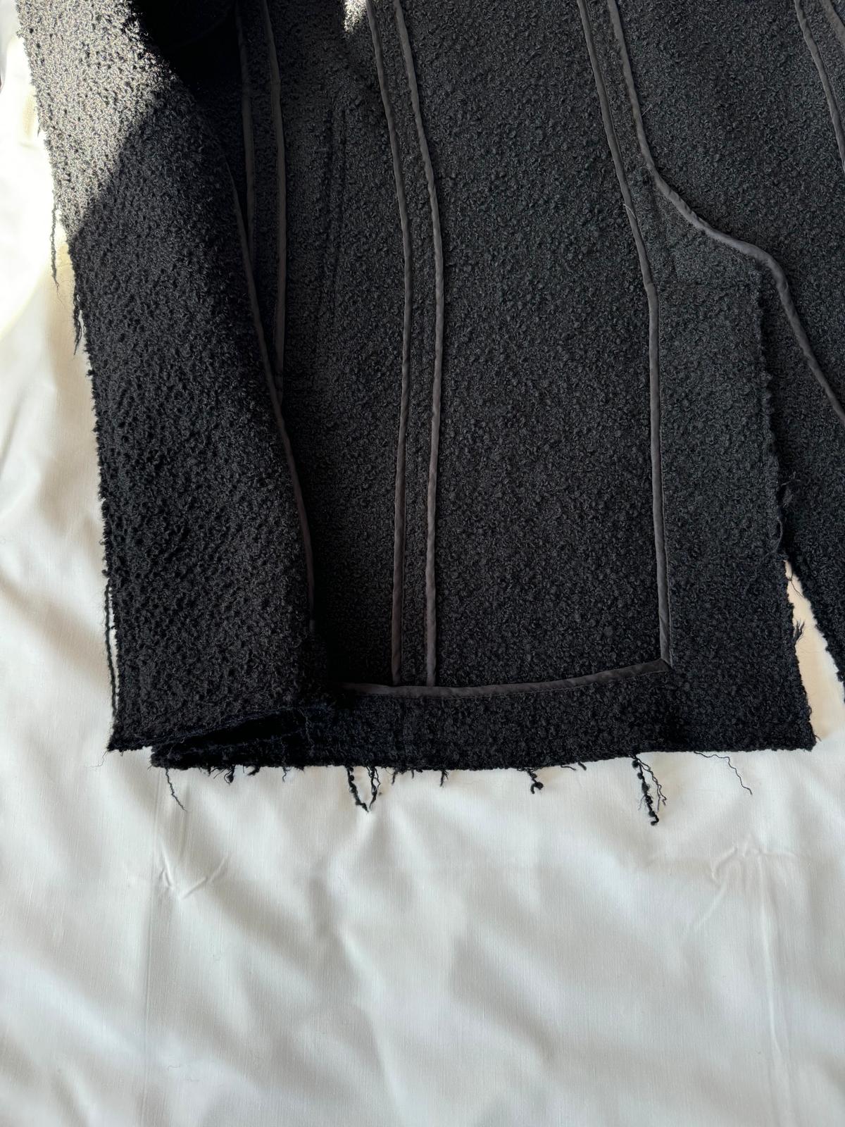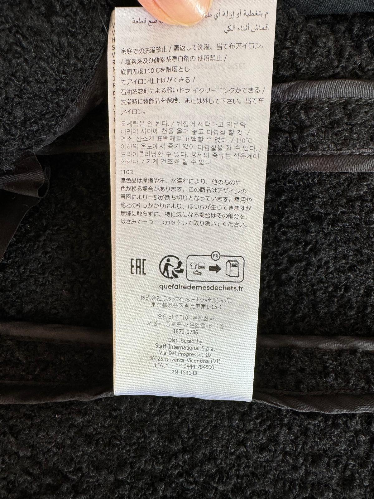 Czarny płaszcz Dsquared2. Wykonany z wełny. Zapinany na guziki. Dwie kieszenie z patkami. Otwarte klapy. Długie rękawy. Górna część płaszcza (górna część pleców oraz rękawy) dodatkowo wzmocniona wszytą podszewką. Model unisex.