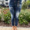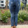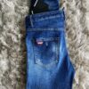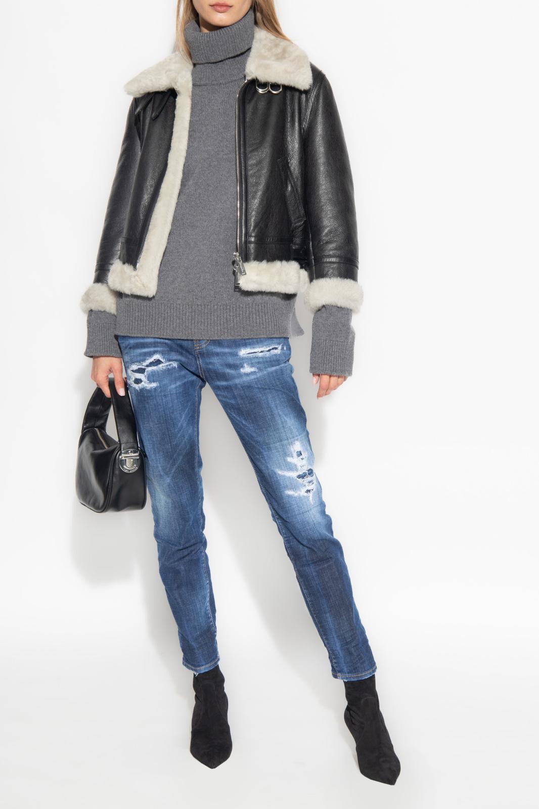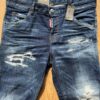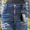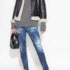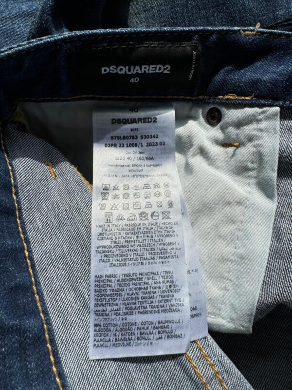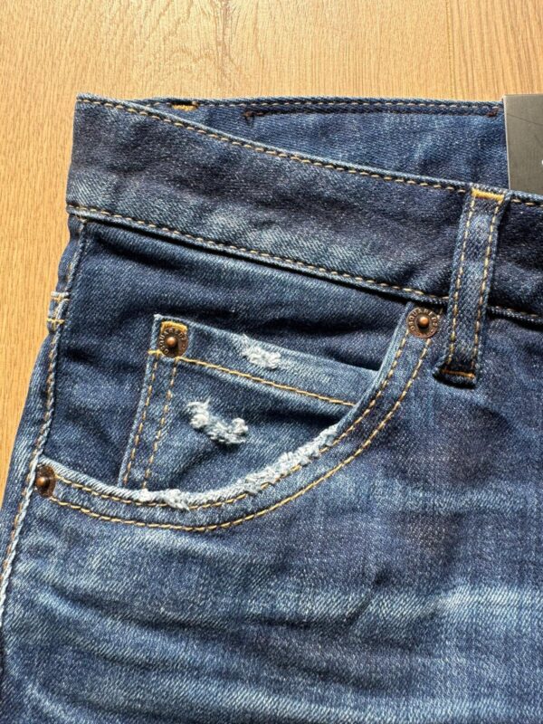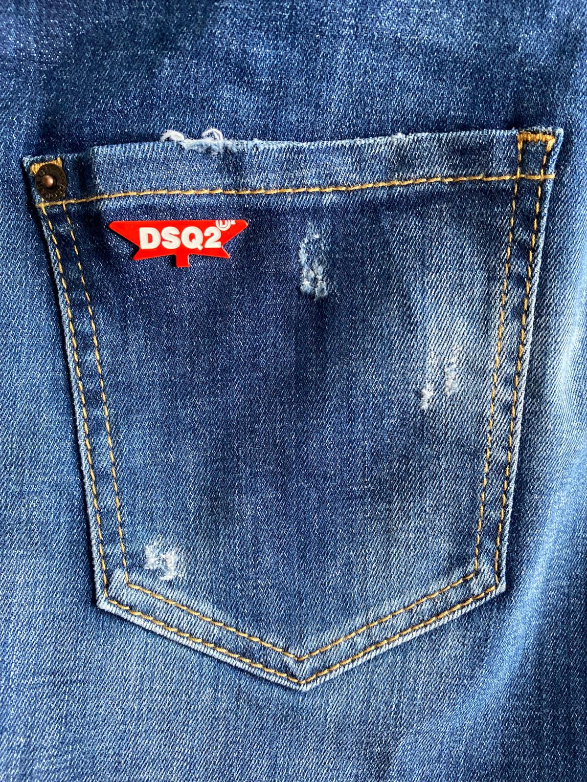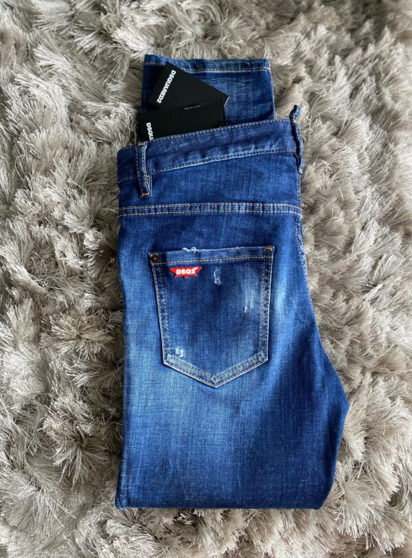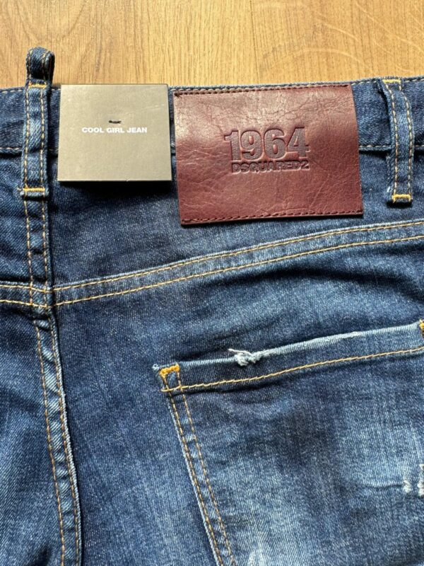 Granatowe, dopasowane jeansy „Cool Girl” od Dsquared2. Wykonane z efektem przetarcia, zapięcie na guziki, klasyczne kieszenie oraz naszywki z logo producenta.