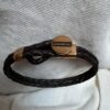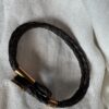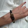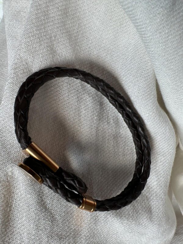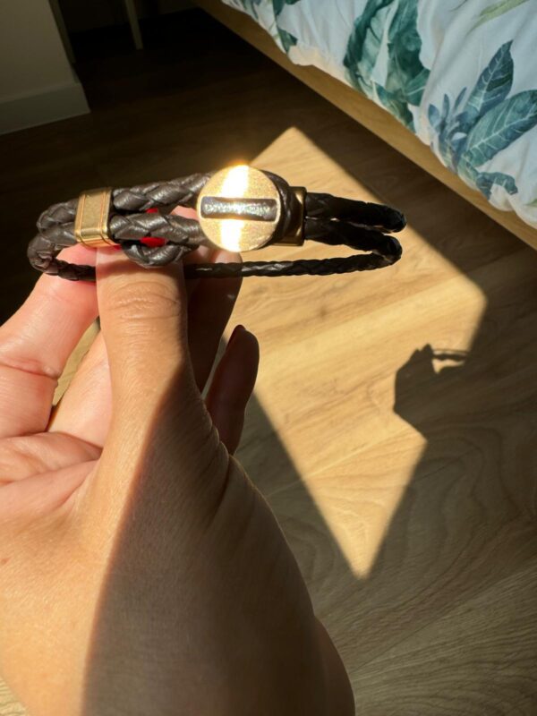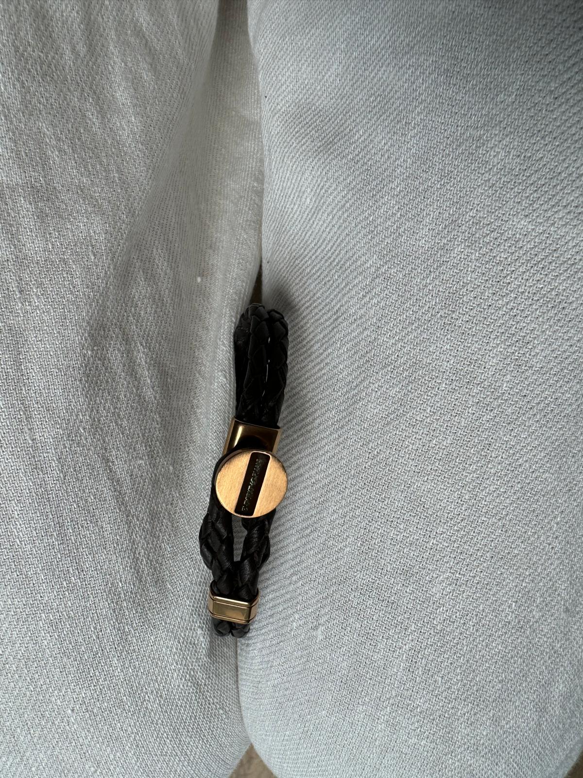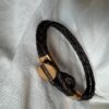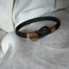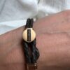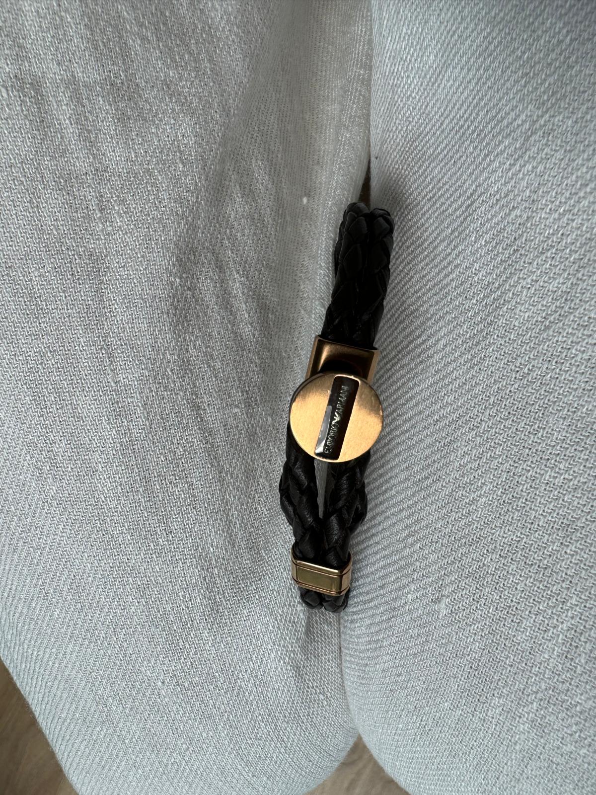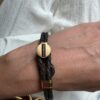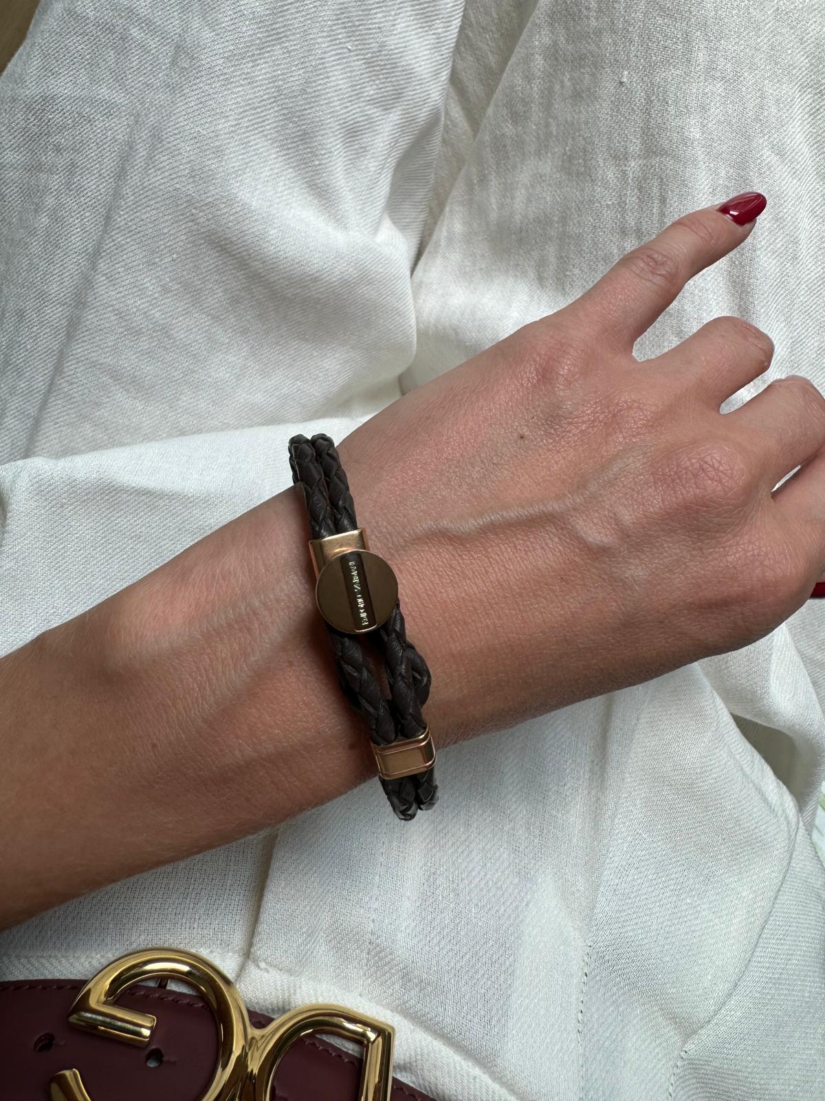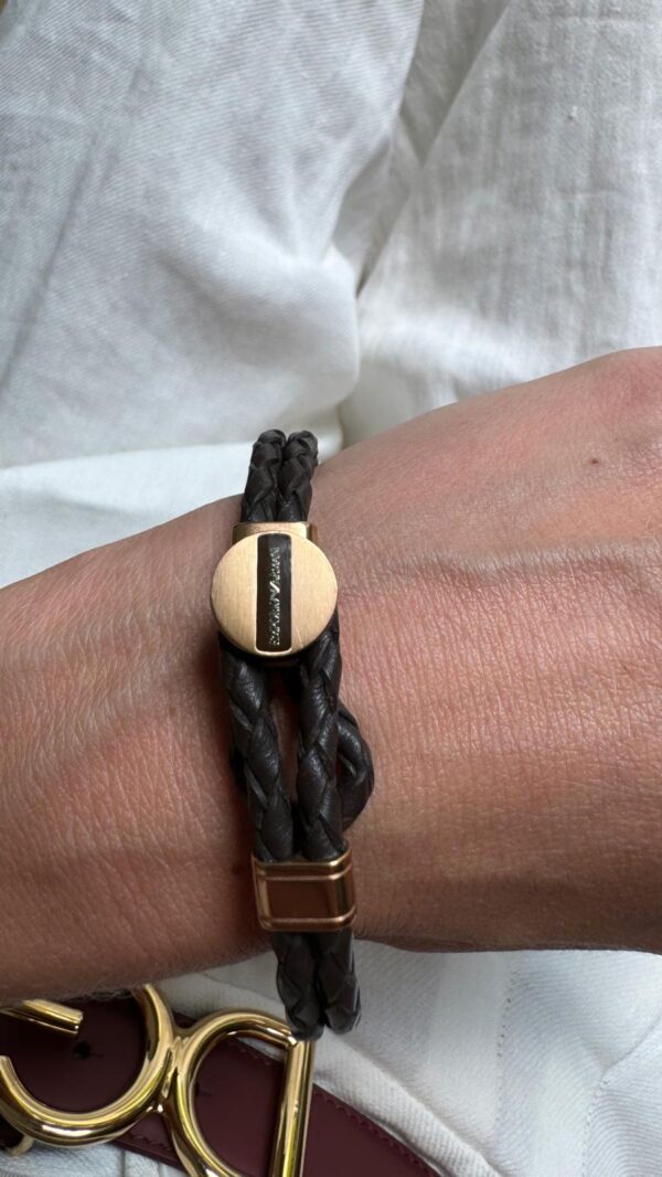 Bransoletka z kolekcji Emporio Armani. Model wykonany z połączenia skóry naturalnej i metalu. Kolor brązowy ze złotymi dodatkami.