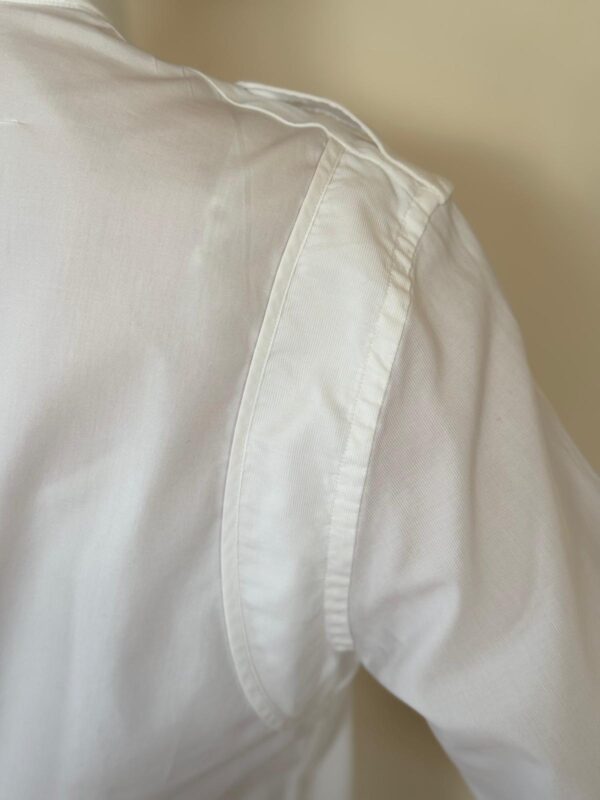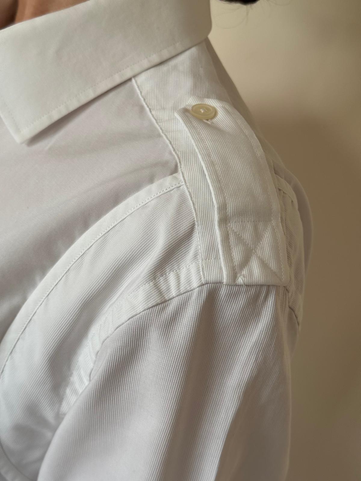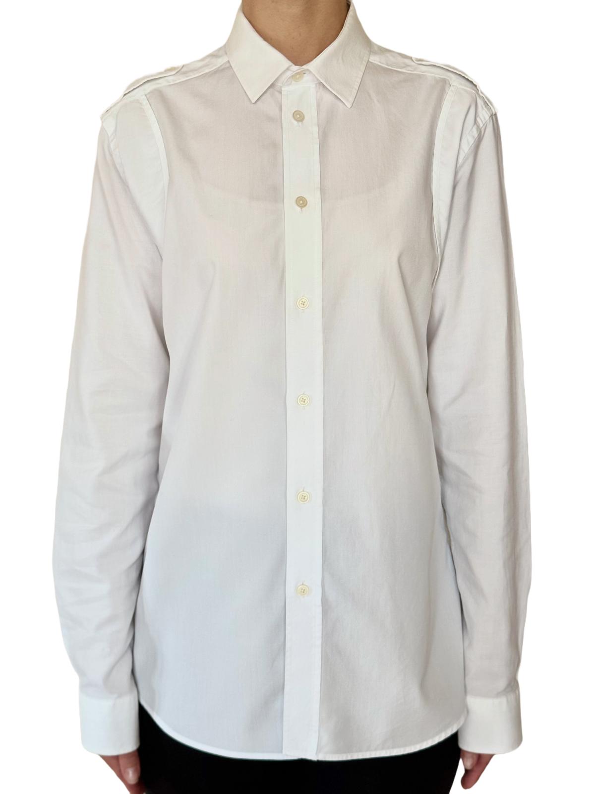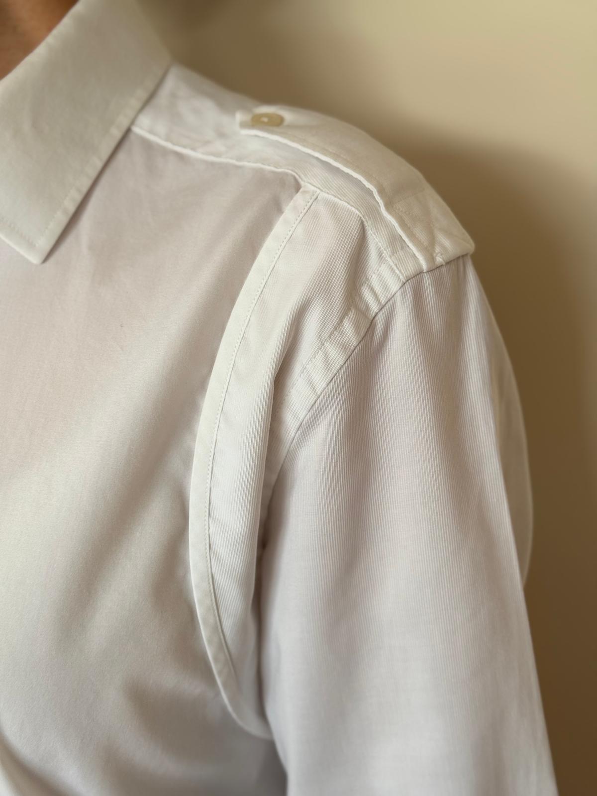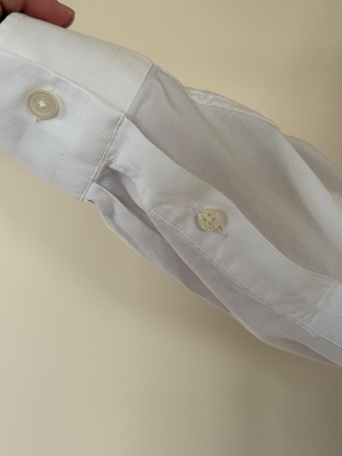 Koszula z długimi rękawami wykonana z bawełny. Jest to wysokiej jakości produkt od Domu Mody Givenchy, który posłuży Ci przez wiele sezonów. Koszula o klasycznym kroju lecz w nowej odsłonie – z prostym kołnierzykiem, pagonami i efektownymi wstawkami przy rękawach. Z tyłu koszuli poziome przeszycie na karku. Rękawy wykonano z nieco grubszej niż pozostała część koszuli prążkowanej popeliny. Guziczki z masy perłowej z nazwą marki. Bawełniana koszula jest idealnym wyborem zarówno na co dzień jak i do biura.