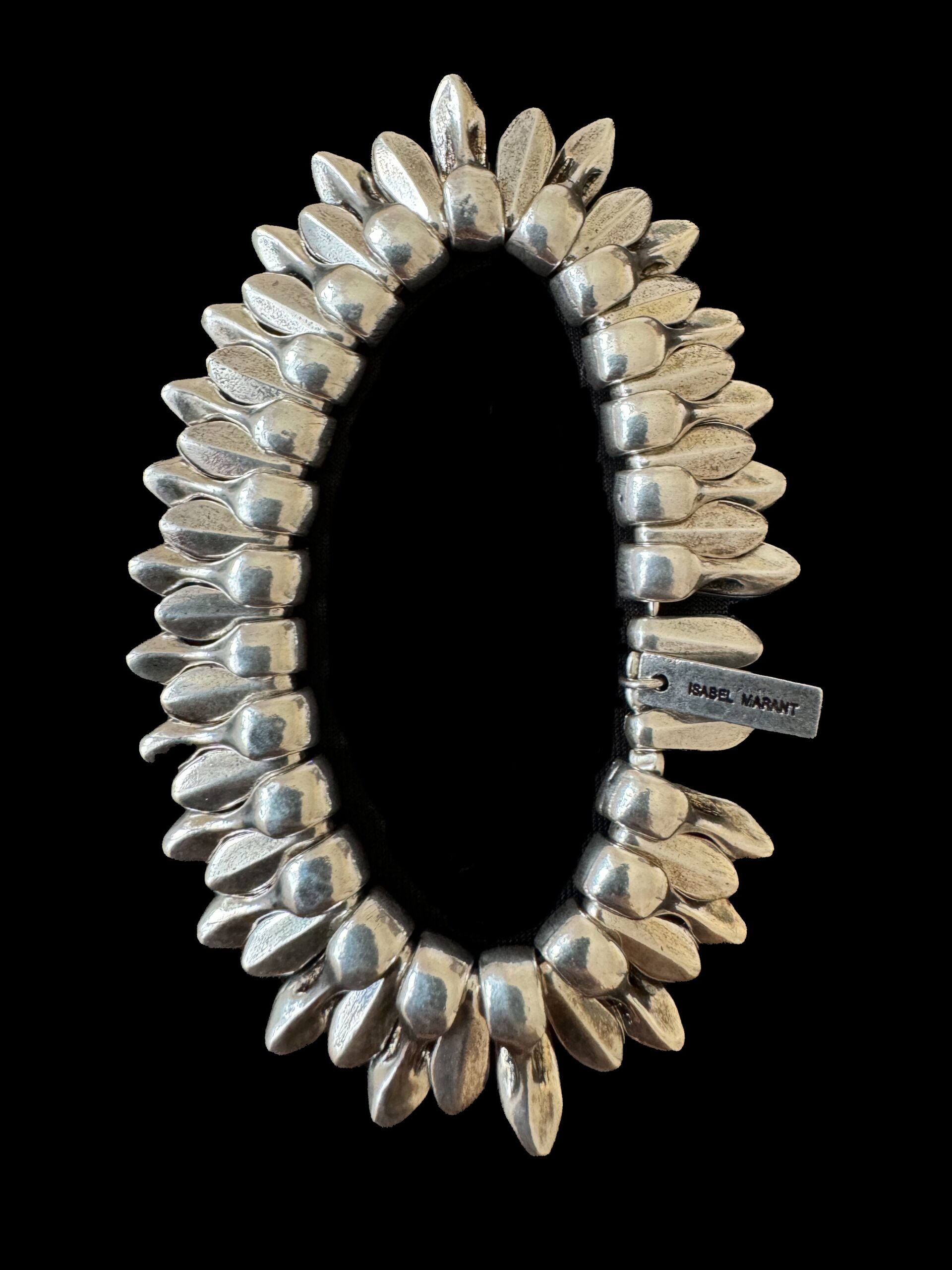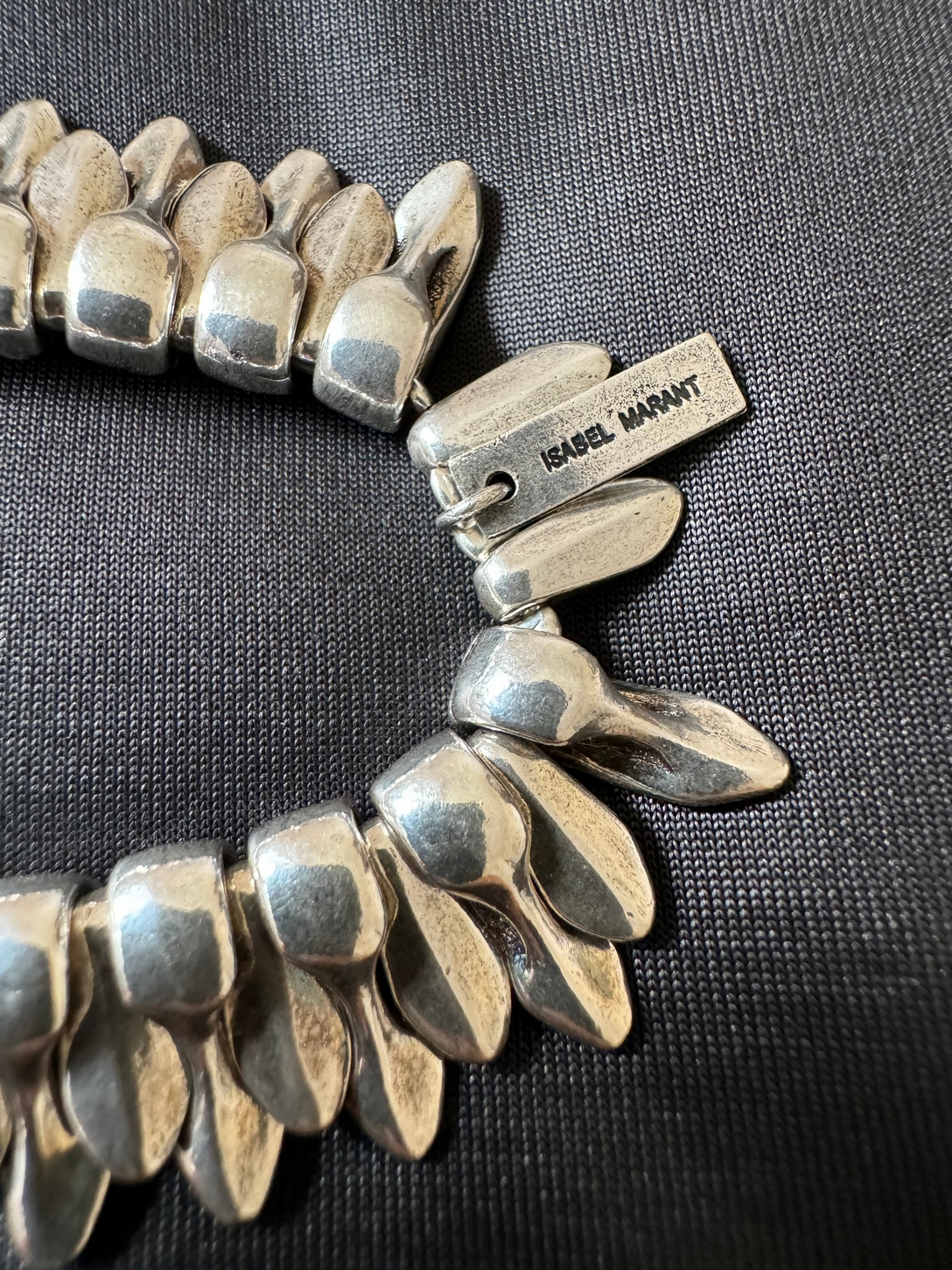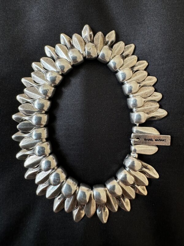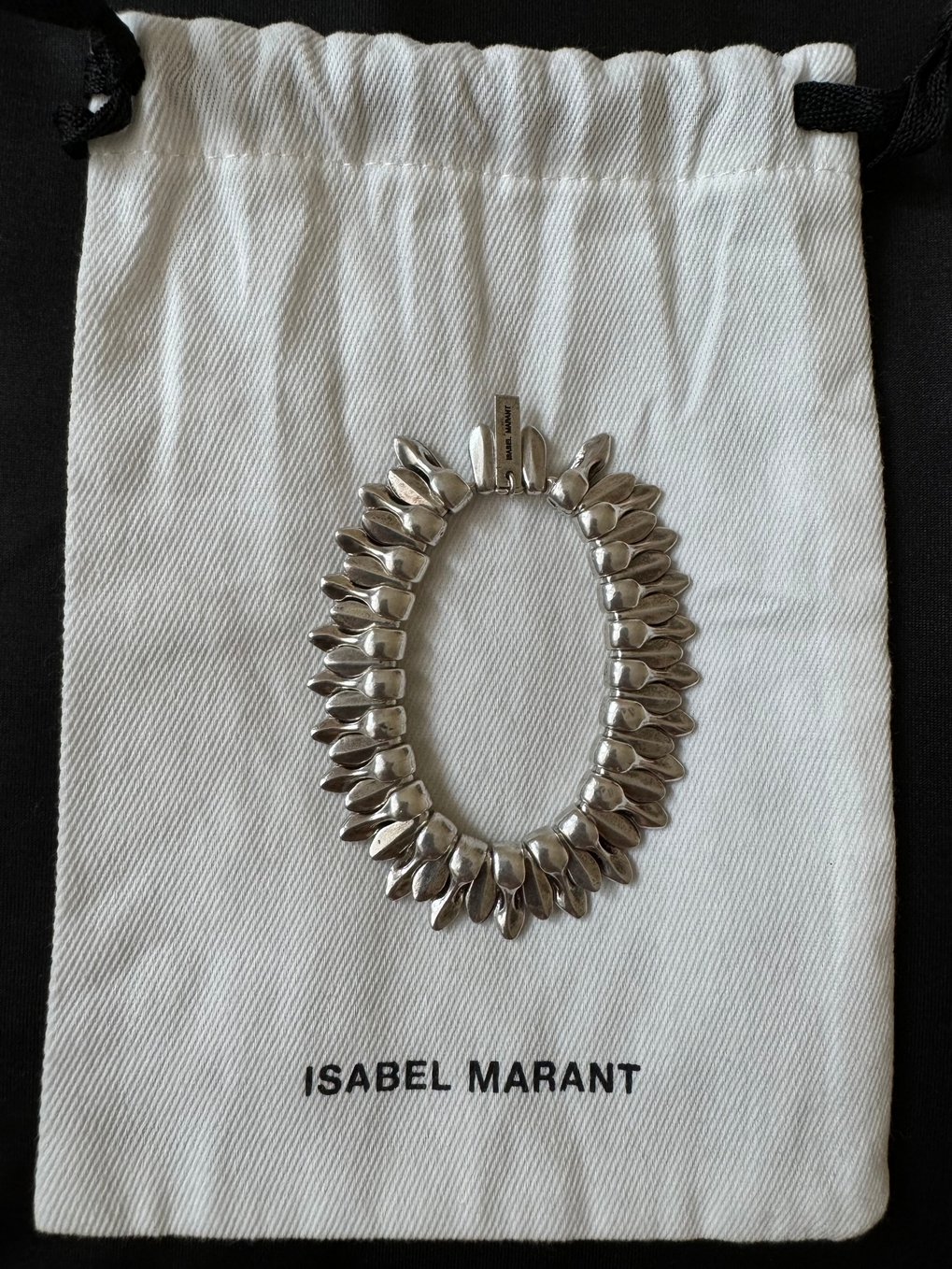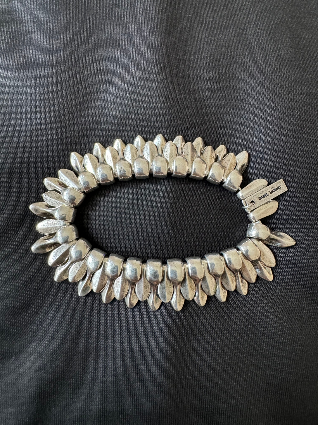 Bransoletka w kolorze srebrnym projektu Isabel Marant. Wykonana ze stopu metali, wygrawerowane logo i ozdobiona charakterystycznymi „piórami”.