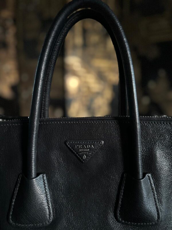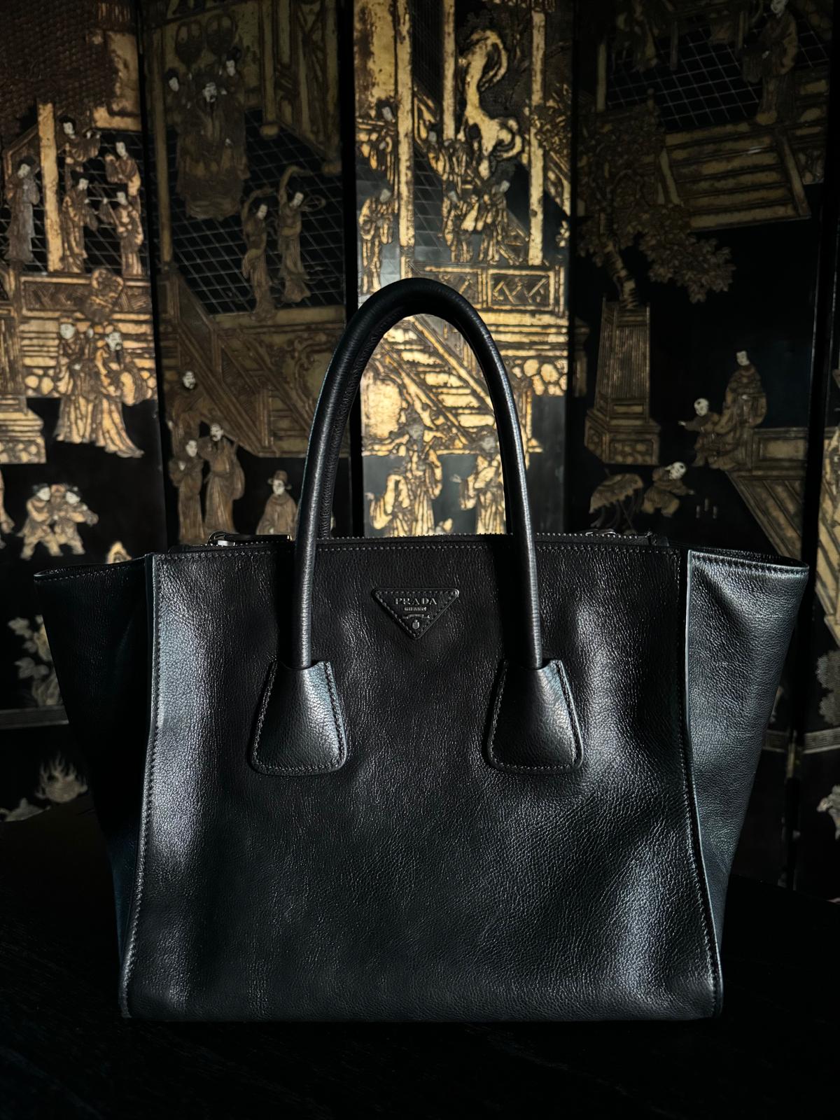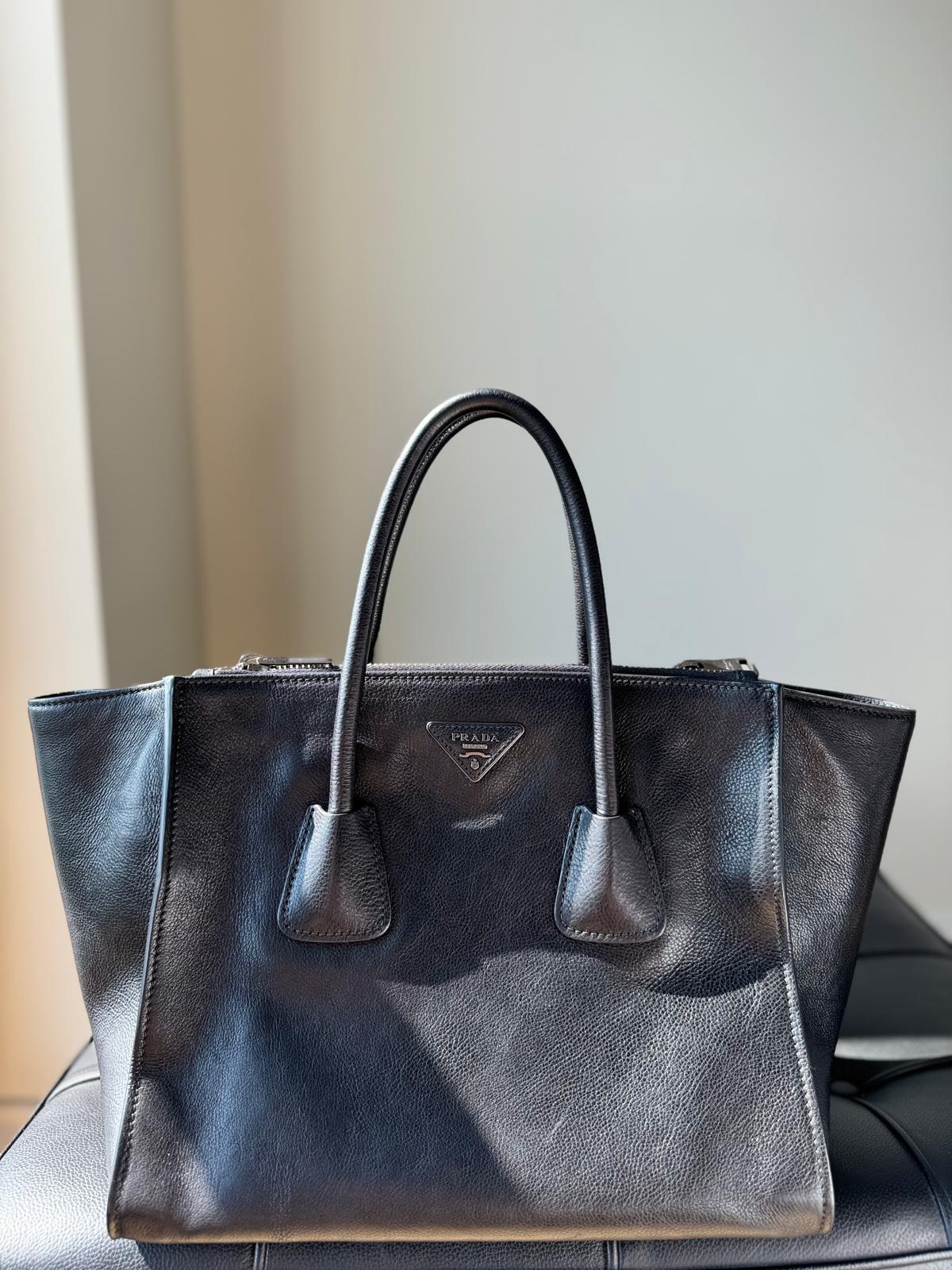 Torebka Twin Pocket Glace Calf Medium Tote, została wykonana ze starannie wyselekcjonowanej młodej skóry cielęcej, w kolorze czarnym.